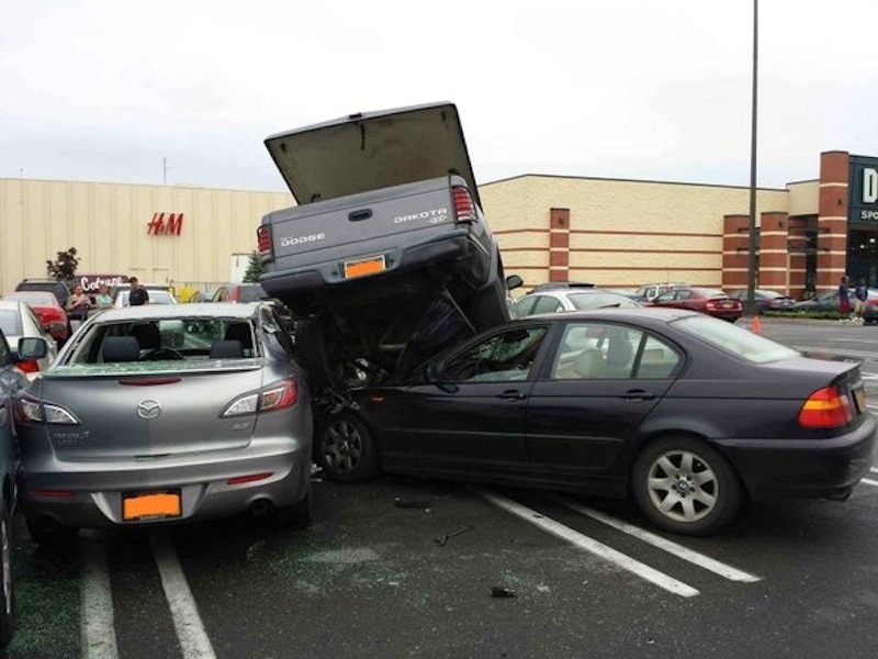 Accidentul care ridică semne de întrebare a avut loc în parcarea centrului comercial Sangertown Square Mall din statul american New York.