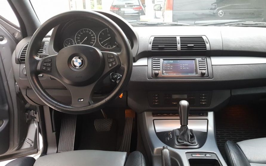 Interiorul acestui X5 îţi transmite o starea generală de confort şi relaxare. Întregul ambient, ergonomia, calitatea materialelor, poziţia la volan, toate elementele te fac să te simţi mulţumit de tine. Maşina din imagine este fabricată în 2006, are interior din piele în două culori, scaune sport cu memorie şi încălzire, faruri cu xenon, volan M electric şi încălzit, şi senzori de parcare faţă si spate. Maşina are cutie de viteze automată şi motor cu o capacitate cilindrică de 3.0 litri. Pe kiliometraj arată că maşina a parcurs 179.000 km.