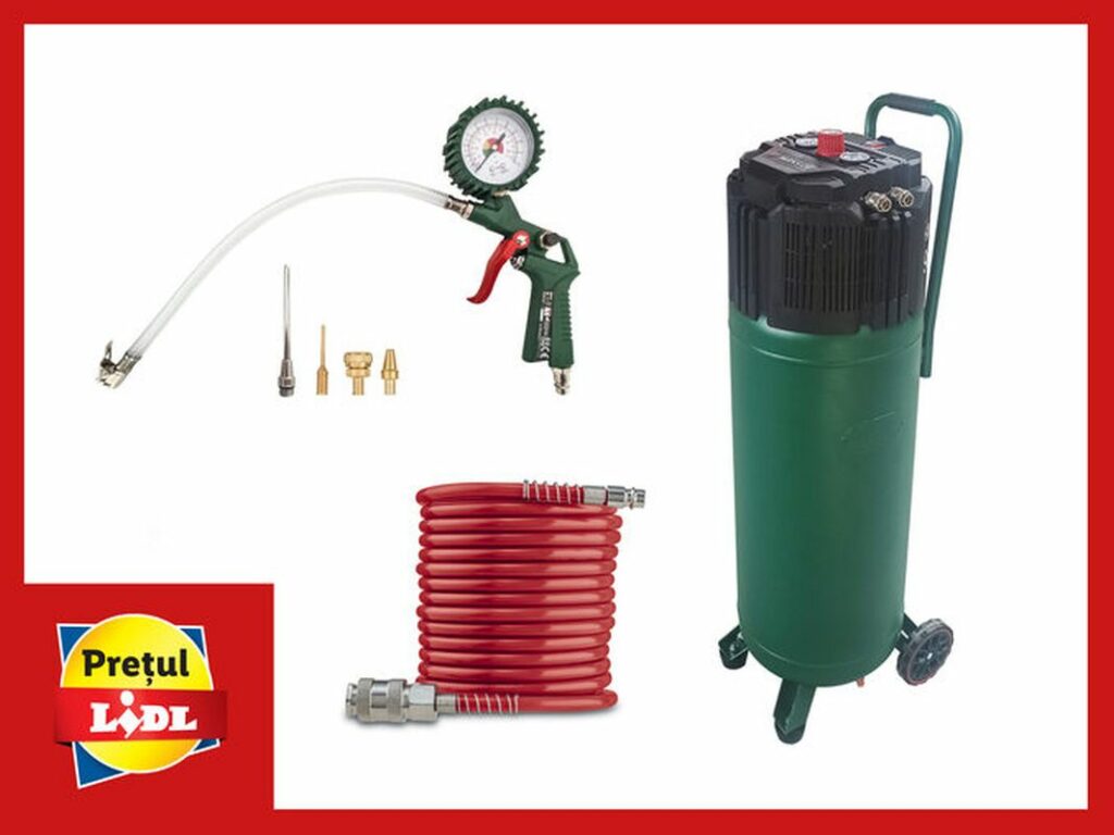 Acest dispozitiv este oferit de Lidl cu prețul de 699 lei și are o turație maximă de 4000 rpm. Dispozitivul oferă o presiune de max. 10 bar și are o putere de aspirare de 240 L/min. Compresorul vine în pachet cu următoarele accesorii: 5 m de furtun spiralat, 1 pistol pentru umflat anvelope, cu manometru, 1 duză prelungitoare, conector pentru furtun și 3 adaptoare.