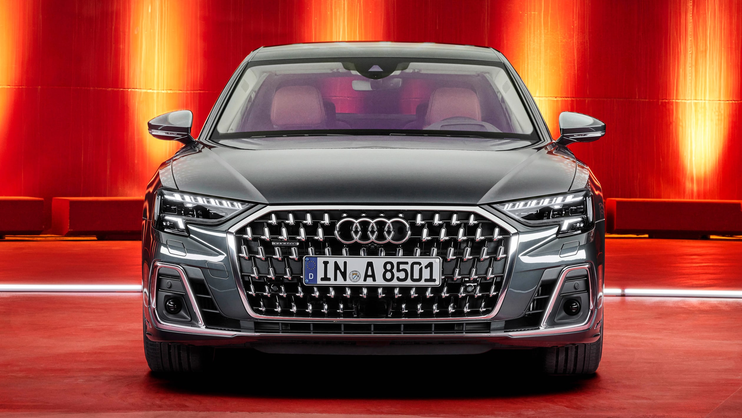 La noul model Audi A8 cea mai mare schimbare este în ceea ce privește grila, care este mai mare decât unitatea montată pe modelele anterioare. De asemenea, bara de protecție din față este ușor modificată, iar pragurile laterale sunt diferite față de restul modelelor.
