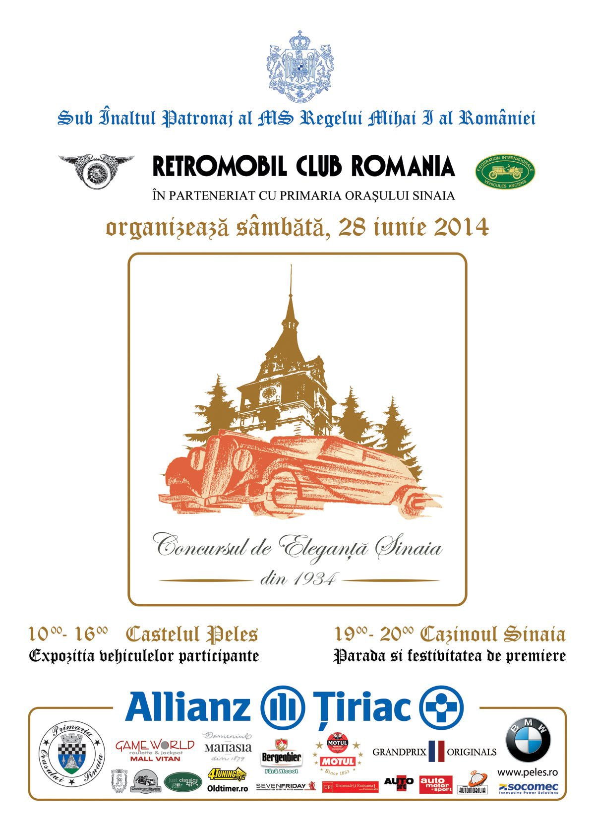 Sâmbătă, 28 iunie, aveţi o singură destinaţie: Sinaia, acolo unde Retromobil Club Romania, sub Înaltul Patronaj al MS Regelui Mihai I al Romaniei, cu sprijinul Primariei Orasului Sinaia şi al Muzeului National Peleş, organizează cea de-a IV-a editie a Concursului de Eleganţă, eveniment inclus în calendarul internaţional F.I.V.A..