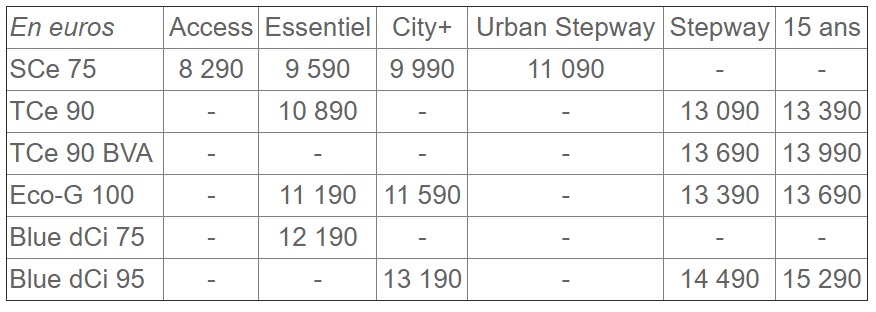 Astfel, după ce în ianuarie a primit versiunea GPL Eco-G 100, acum, în februarie, este reintrodusă transmisia robotizată Easy-R pe motorul TCe 90 de pe Stepway, și finisaje care marchează aniversarea de 15 ani. Transmisia robotizată Easy-R este taxată cu 600 de euro mai mult decât transmisia manuală.