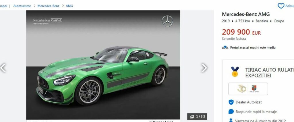Exemplarul oferit în România este fabricat în anul 2019 și are la bord doar 4.753 de kilometri, iar dacă vrei să deții acest AMG GT-R PRO trebuie să plătești 209.900 de euro.