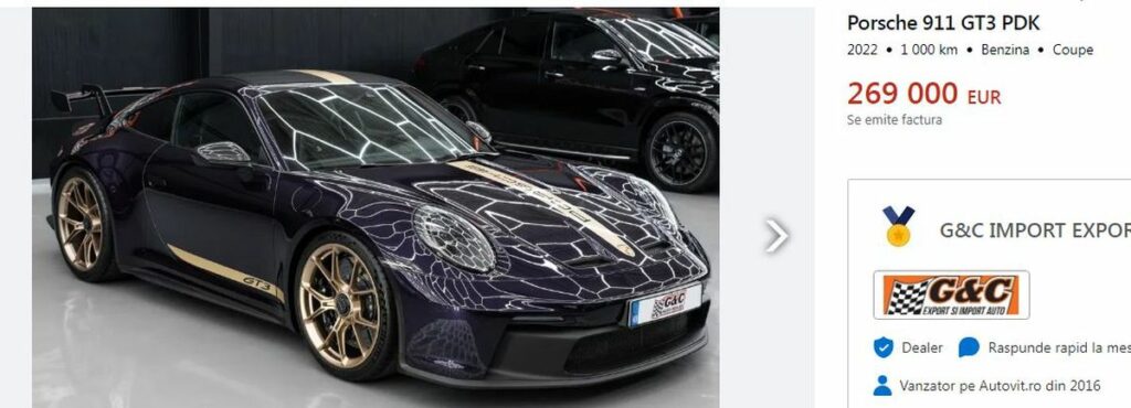 Acest exemplar Porsche 911 GT3 a fost produs în anul 2022 și are un rulaj de 1.000 kilometri.