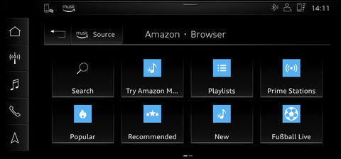 Şoferii Audi pot utiliza acum Amazon Music la bordul maşinii. Serviciul de streaming este o nouă extensie a serviciilor Audi connect. Pe lângă această opţiune Audi mai oferă, cu ocazia Campionatului European de Fotbal, un serviciu special de informare, astfel încât aceştia să poată fi informaţi chiar şi atunci când se află în maşină.