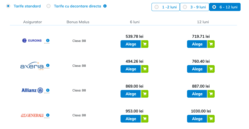 Tarifele au fost calculate pe 11 februarie pentru o asigurare RCA valabilă începând cu 1 martie 2022 (Clasa B8, permis emis în anul 2000) pe site-ul brokererului de asigurări Pint.ro. Acestea pot varia în funcție de anumite condiții din piață, precum și de la un broker de asigurări la altul.