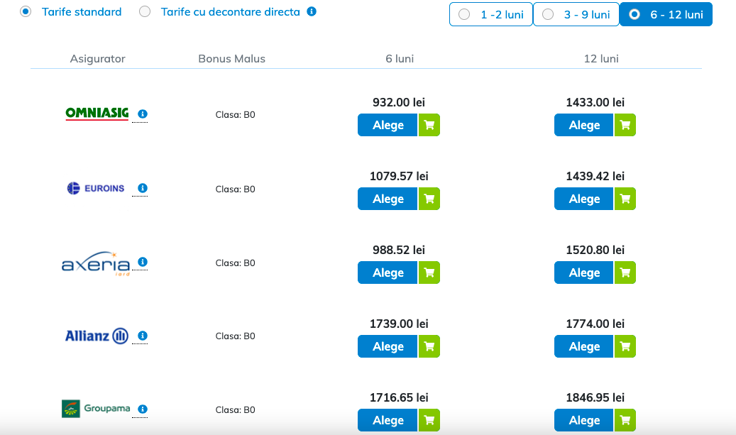 Am calculat tarifele pe 11 februarie pentru o asigurare RCA valabilă începând cu 1 martie 2022 (Clasa B0, permis emis în anul 2020) și tarifele au crescut.