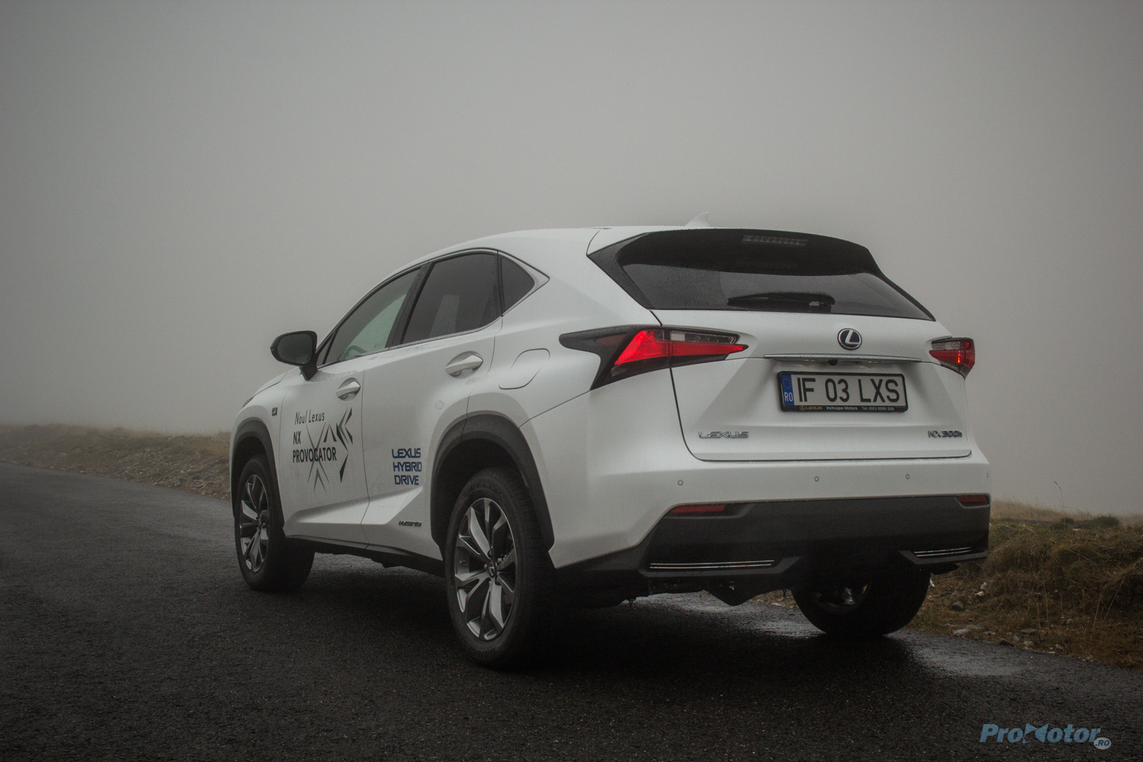 Modelul de test este un Lexus NX 300h F-Sport cu tracţiune integrală, ceea ce presupune introducerea unui sistem hibrid care funcţionează astfel: vorbim despre un propulsor de 2,5 litri pe benzină ce livrează 115 CP şi 210 Nm care face echipă cu un ansablu format dintr-un motor-generator de 143 CP şi un motor electric de 68 CP care acţionează puntea spate atunci când roţile faţă încep să prezinte probleme cu menţinerea aderenţei.