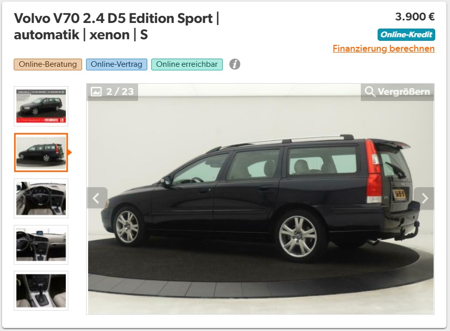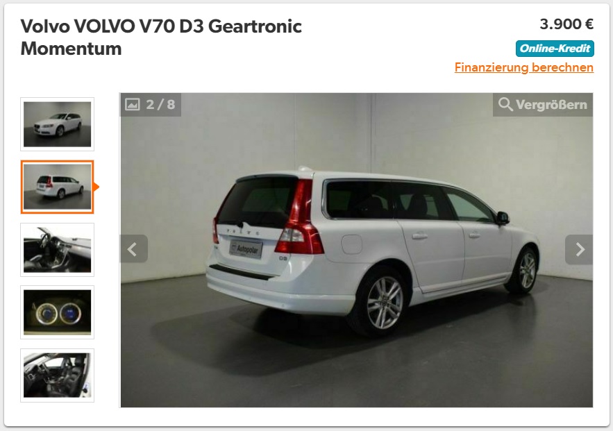 Pentru cei care se gândesc să-și cumpere o mașină Volvo la mâna a doua am făcut o listă cu sugestii. Cu suma de 4.000 de euro poate fi cumpărat un Volvo break de lux, un sedan sau chiar și un SUV XC90 (desemnată ”Cea mai sigură mașină din lume”). Condiția aste ca viitorul client să se obișnuiască cu faptul că mașina are ceva kilometri la bord.