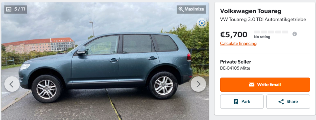 Touareg-ul a fost dovada lui Volkswagen că poate face mașini premium. Alături de Phaeton, reprezenta apogeul capabilităților de producție pe care producătorul le avea. Dacă Phaeton nu a fost un succes în materie de vânzări, Touareg a fost. Dovada este că a ajuns la a treia generație. România este o piață foarte importantă pentru Touareg, iar cei interesați știu ce oferă SUV-ul german. Exemplarul găsit de noi este un model facelift din anul 2007. Sub capotă se află un motor de 3,0 litri pe motorină, care produce 224 de cai putere. Mașina a parcurs 285.000 de kilometri în cei 15 ani de viață.