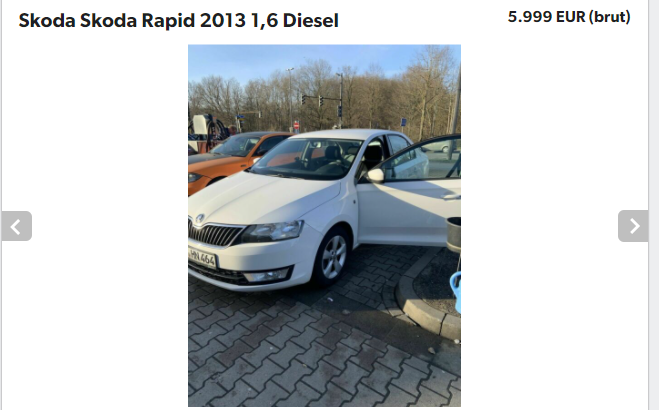 Din categoria „limuzină” găsim o Skoda Rapid din 2013, care este echipată cu un motor 1,6 litri diesel și o cutie de viteze manuală. Mașina are un rulaj de 160.000 de kilometri și poate dezvolta până la 110 cai putere.