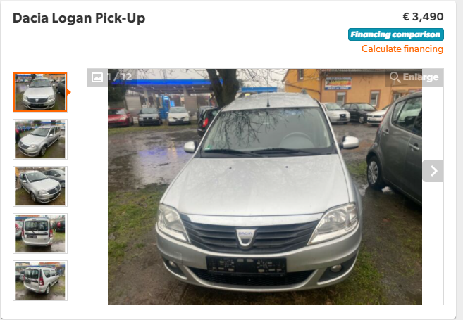 Dacă ai o afacere și vrei să-ți alimentezi magazinul, atunci un model Dacia Logan Pick-up ar fi perfect pentru tine. Am găsit unul pe mobile.de care are un rulaj de 212.130 de kilometri.