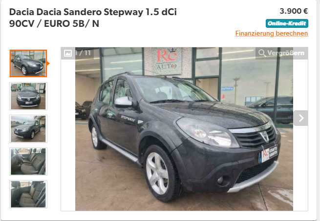 Tot din gama Sandero găsim și modelul Stepway pe mobile.de. Mașina are un motor de 1,4 litri diesel cu transmisie manuală. Rulajul mașinii este de 190.000 de kilometri.