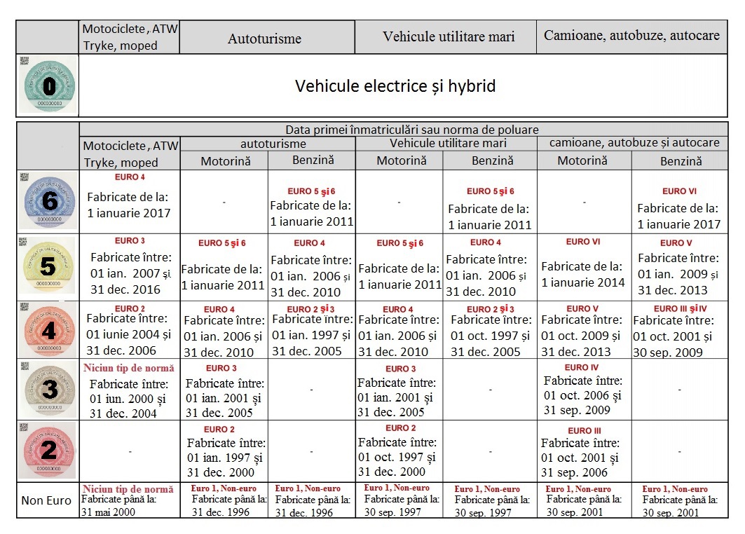 Autovehiculele considerate ca fiind cel mai poluante, cărora fie nu le va fi alocat niciun abţibild, fie ar putea fi conceput un sticker special pentru ele, sunt motocicletele fabricate până în anul 2000, autoturismele fabricate până în 1996, autoutilitarele fabricate până în septembrie 1997 şi autobuzele, camioanele şi autocarele fabricate înainte de 30 septembrie 2001.