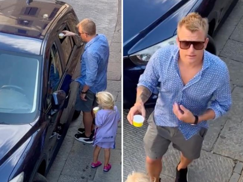 Într-una dintre zile, în care temperaturile au depășit cu mult 30 de grade, Kimi a ieșit la o scurtă plimbare cu fetița lui Rianna Angelia Milana. Cei doi mâncau câte o înghețată în momentul în care fostului „ferrarist” i-a atras atenția un detaliu de la o mașină parcată pe una dintre străduțele din localitatea San Galgano.