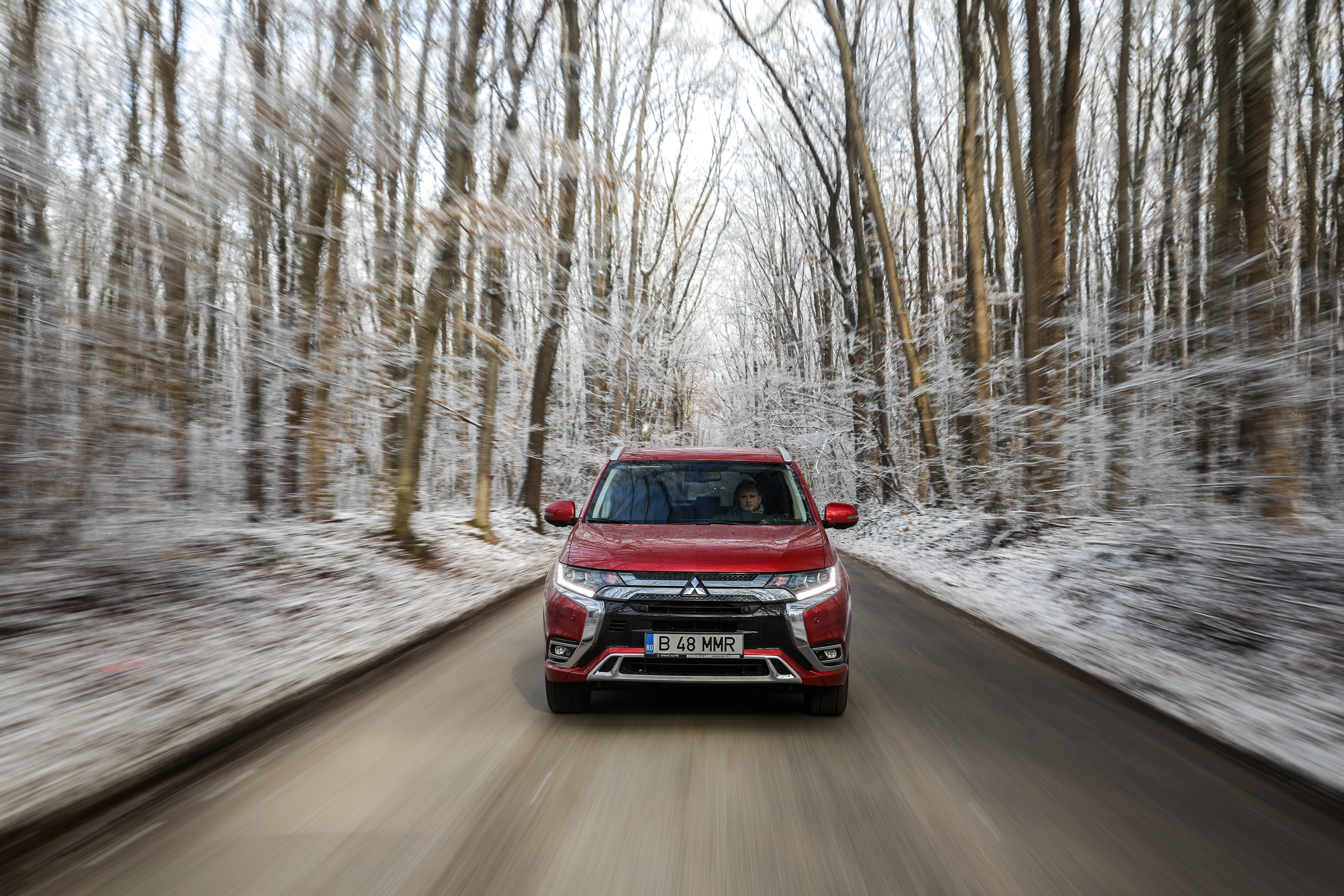 SUV-ul hybrid Mitsubishi nu este cea mai rapidă maşină de pe şosele când vine vorba de viteza maximă, însă acceleraţia este liniară şi te suprinde plăcut. Cu siguranţă, puterea este suficientă. Manevrabilitatea este bună, chiar dacă direcţia este un pic moale. Modul Sport oferă un plus de senzaţii şi acţionarea lui este sesizabilă. Suspensia este echilibrată, nici prea moale, nici prea tare.