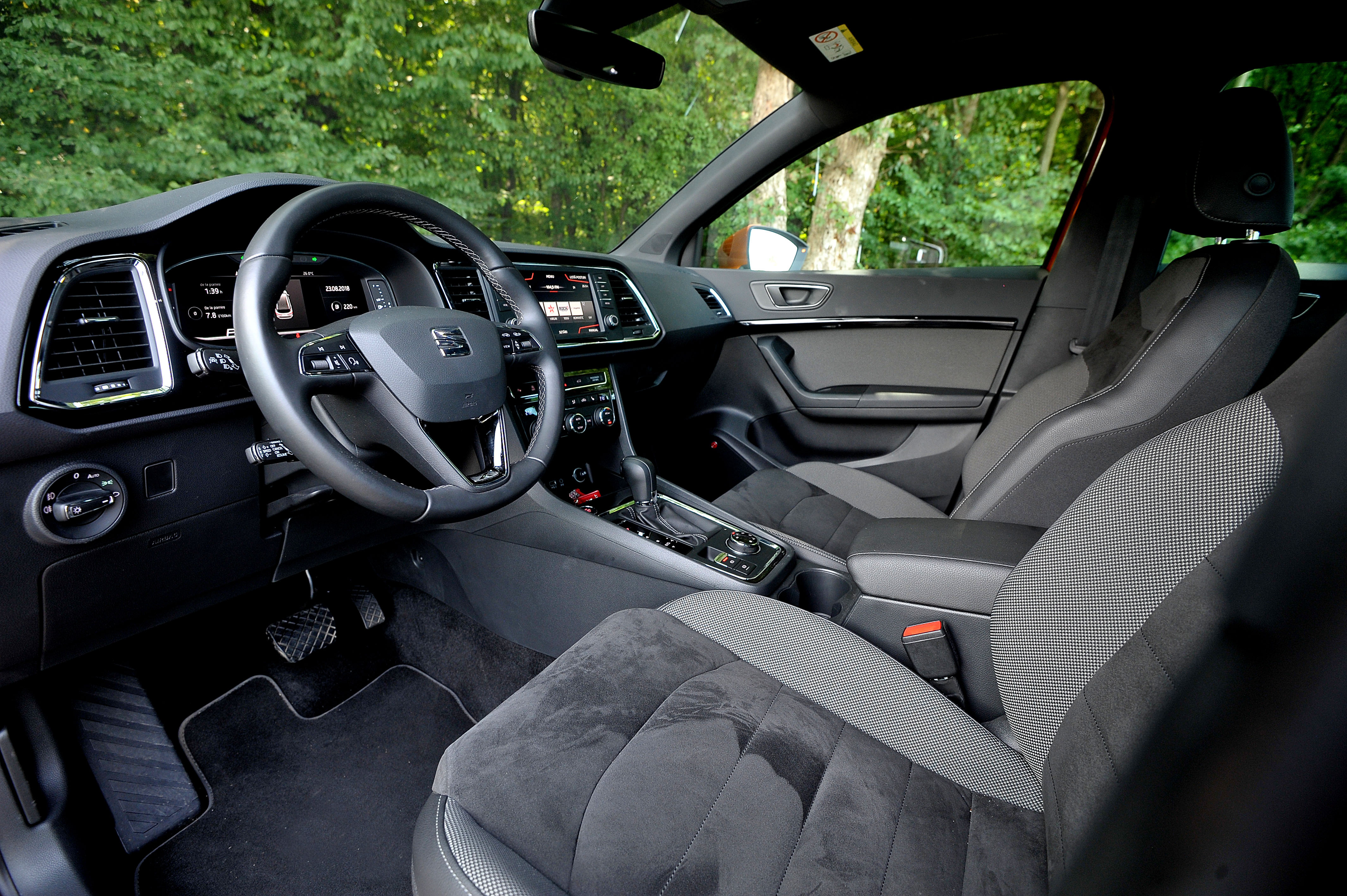 Poziţia în scaunul şoferului este foarte bună, spaţiul la cap fiind mai mult decât suficient, iar vederea în faţă şi lateral este de asemenea bună. Seat Ateca punctează considerabil la capitolele spaţiu şi confort. Volanul este reglabil atât pe înălţime, cât şi pe adâncime, iar modificările se fac foarte fin, ceea ce demonstrează că s-a acordat o grijă specială la materiale şi asamblare.