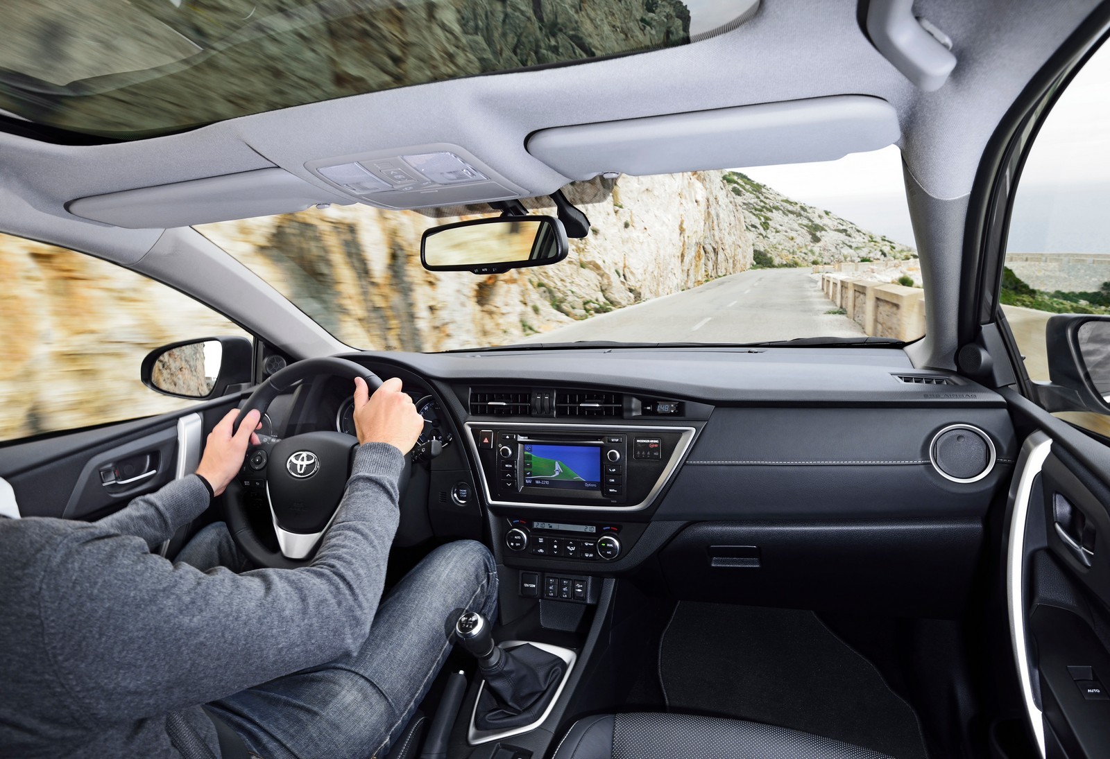 Interiorul lui Auris Touring Sports e, în esenţă, acelaşi ca pe Auris hatchback. Asta înseamnă că plasticele sunt destul de tari mai peste tot, în afară de partea de sus a planşei de bord, iar designul general inspiră mai degrabă ideea de durabilitate decât ideea de inovaţie, iar cel mai bun exemplu în acest caz e ceasul digital care aduce aminte de anii ‘80. Însă, după câteva ore de condus ajungi să te obişnuieşti cu toate plusurile şi minusurile interiorului şi începi să crezi că, deşi nu arată extraordinar, o să reziste, probabil, o viaţă întreagă.