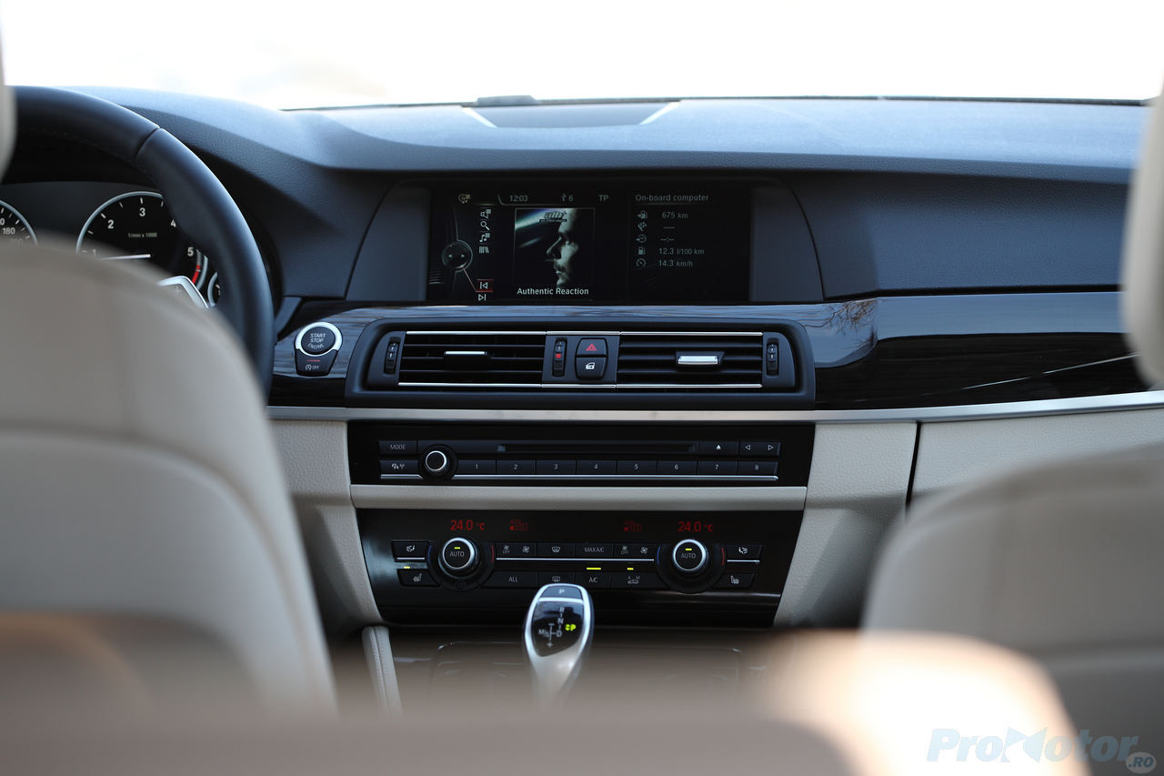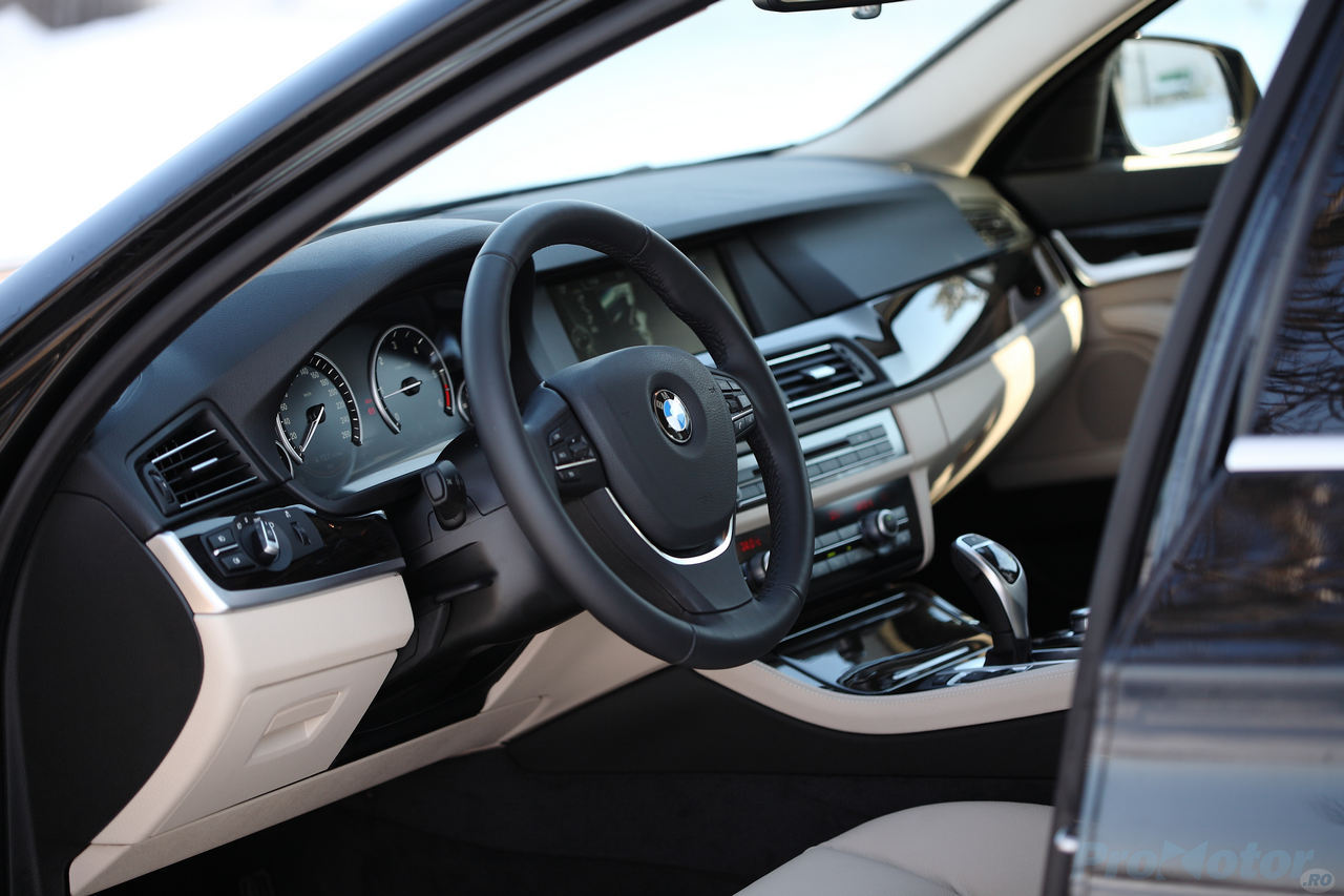 Interiorul arată excelent, dar aici nu există diferenţe faţă de Seria 5 sedan, iar eu trebuie să mă văd nevoit să recunosc că nu găsesc vreun defect cu privire la calitatea materialelor sau a asamblării, lucru pe care nu l-aş putea spune despre Seria 3 sau Seria 1… Ne aflăm în zona în care BMW livrează 100% ceea ce promite, iar dacă adaugi circa 10-15.000 de euro la preţul de bază, vei avea un interior realmente luxuriant. Confortul e la cote maxime, deşi aş putea mormăi la adresa sistemului manual de culisare a scaunelor (dacă nu le luaţi full electric), greşit gândit.