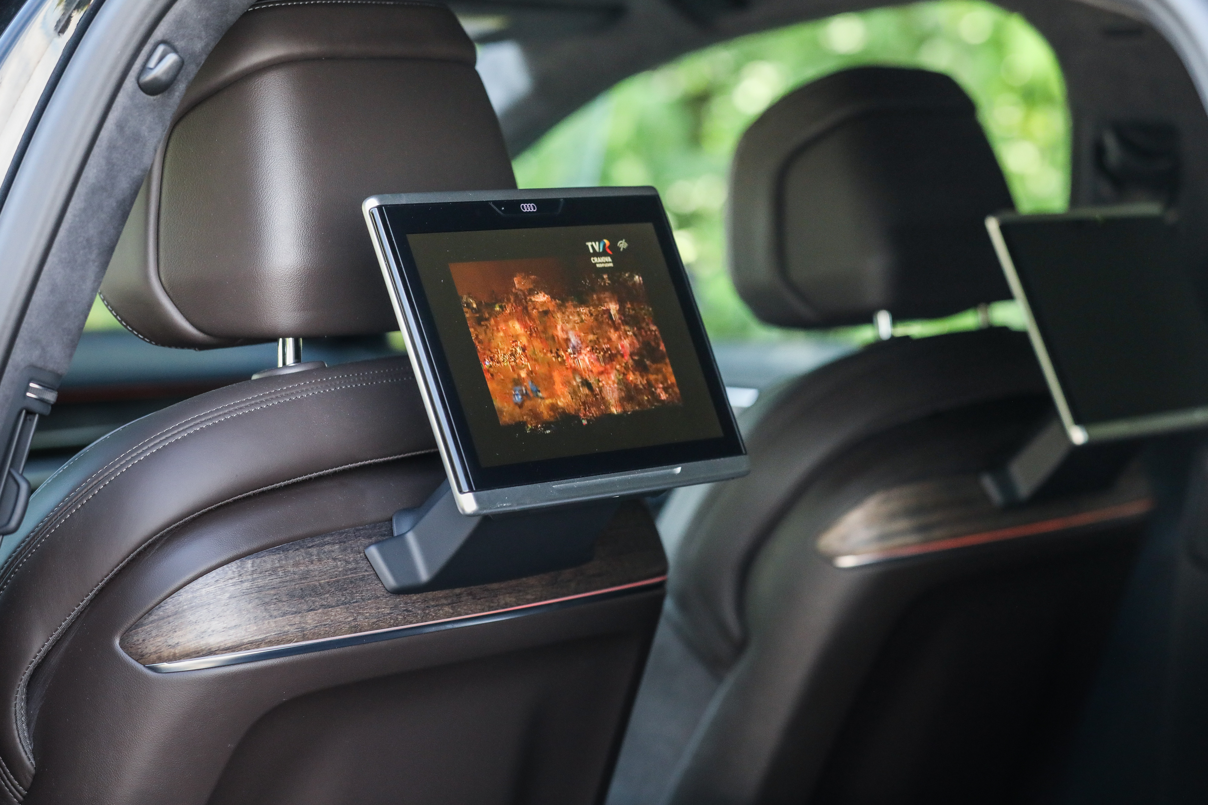 Sistemul Audi Rear Entertainment cu două tablete de 10 inchi prinse în spătarele scaunelor din faţă costă 3.500 de euro, iar ele oferă acces la sistemul de infotainment la maşinii, precum şi browser de internet şi funcţii TV. Al treilea controller pentru locurile din spate poartă numele Rear Seat Remote vine sub forma unei mini-tablete detaşabile de 5,7 inchi integrată în cotieră.