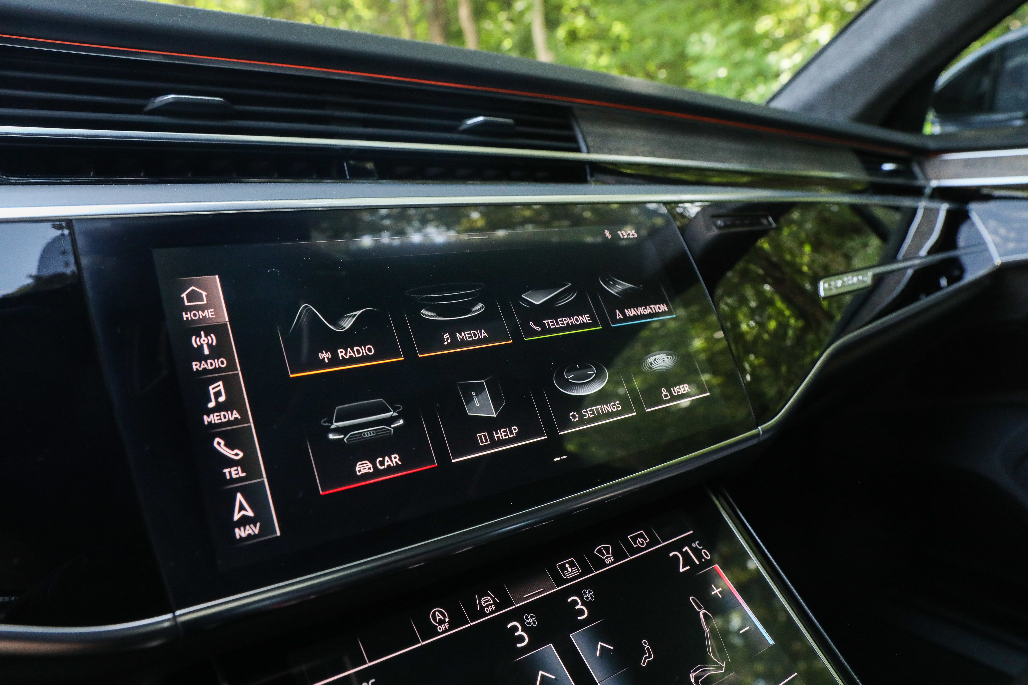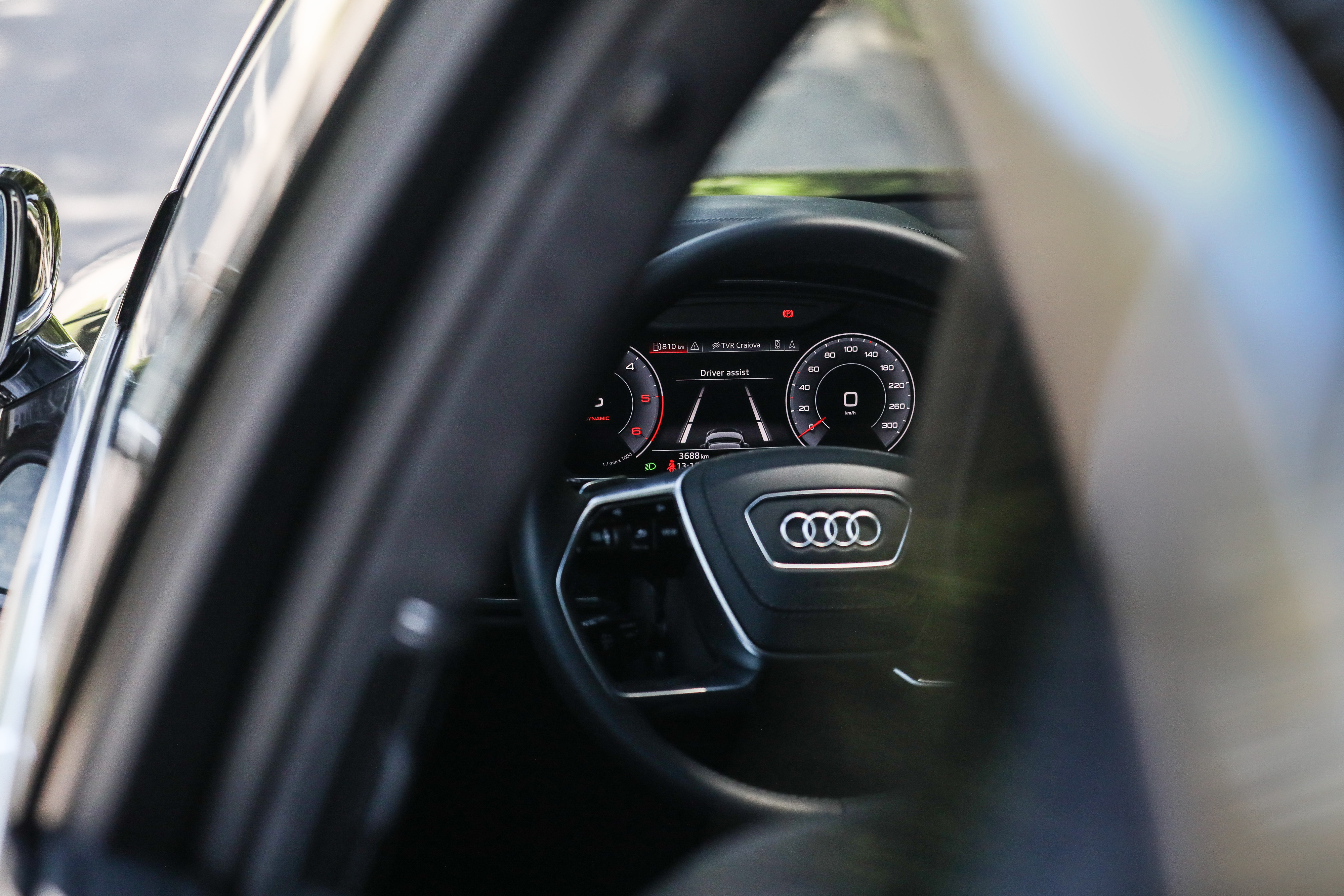 Bordul este dominat de ecrane tactile, însă nu obişnuite. Acestea oferă un feedback haptic şi rezolvă una dintre principalele probleme ale acestei tehnologii. Astfel, ştii sigur că ai activat opţiunea dorită pentru că ai senzaţia oferită de un buton fizic. Sistemul infotainment MMI este găzduit de ecranul principal de 10 inchi, sub el fiind situate şi cel care controlează climatizarea, care poate aveam 4 zone individuale.