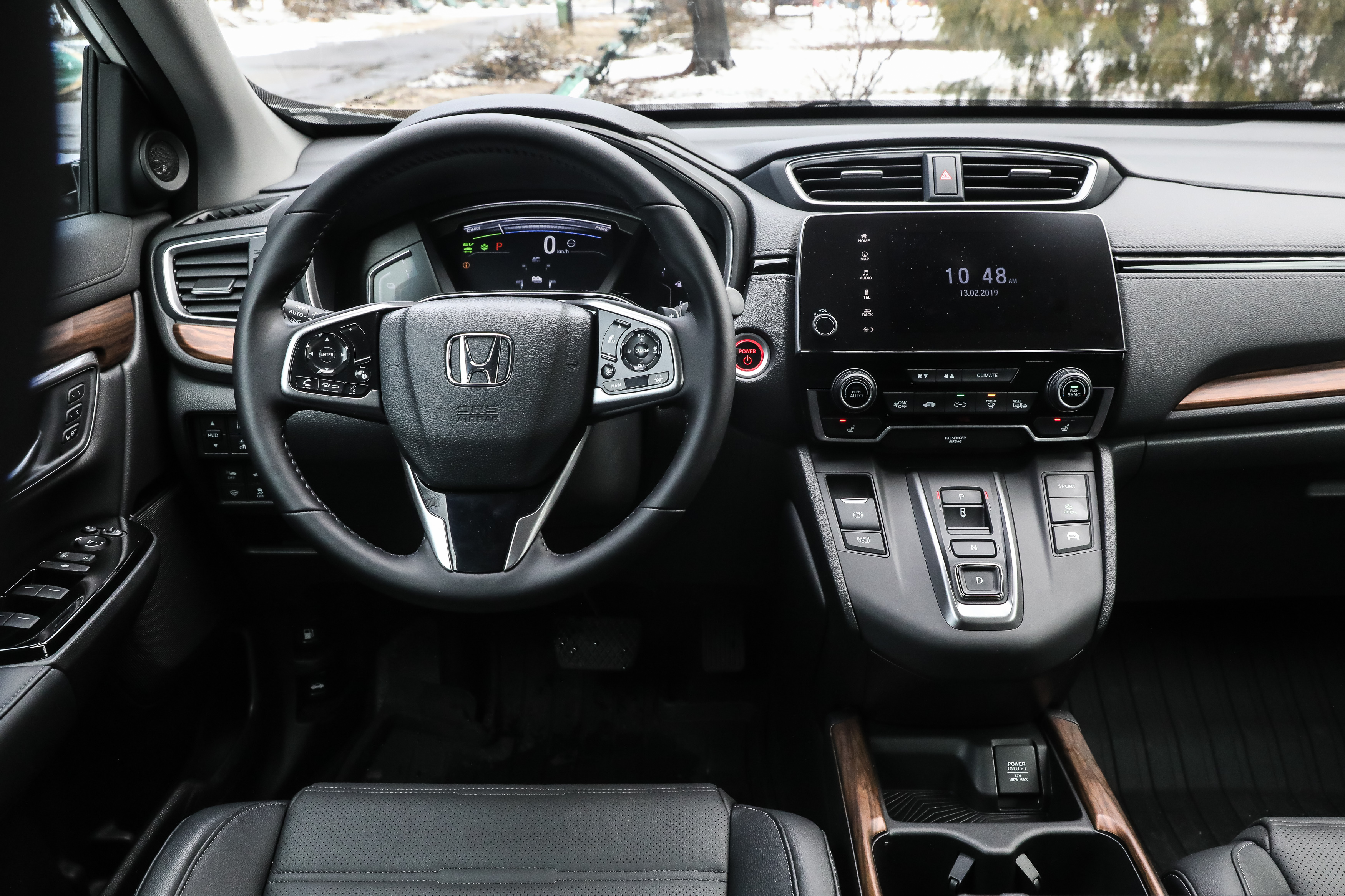 Combinatia de motor termin şi electric oferă 184 de cai-putere şi un cuplu de 315 Nm, suficientă putere pentru ca CR-V să fie capabilă de plecări rapide de pe loc şi depăşiri în forţă. Transmisia CVT cu modul nou de dispunere a comenzilor este uşor de operat.