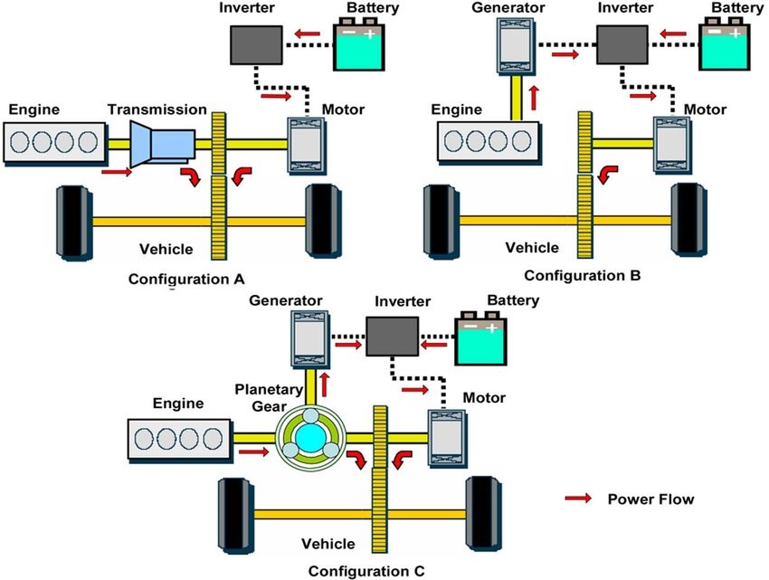 Vă spuneam mai sus că pentru o mașină hibridizarea implică prezența unui motor termic însoțit de unul electric pentru a “colabora” în orice fel pentru a învârti roțile.